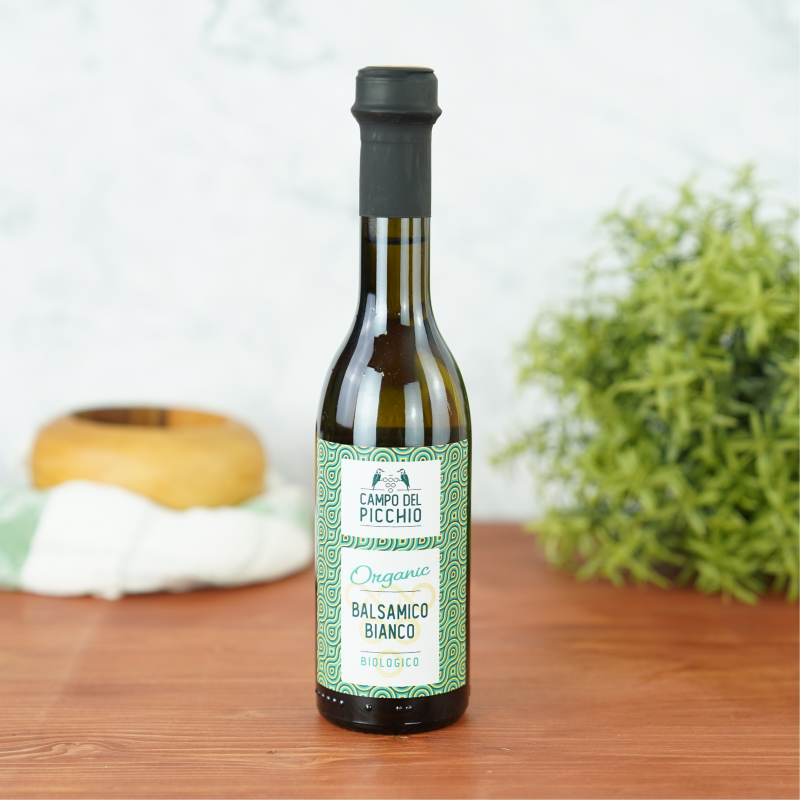 Condimento bianco (weiße Würze) wird aus italienischem Weißweinessig und Traubenmostkonzentrat hergestellt, das bei nur geringen Temperaturen eingedickt wird, so dass das Karamellisieren des Fruchtzuckers unterbleibt. Weiterhin zeichnet er sich durch eine geringe Säure (unter 6 %) aus und eignet sich damit ideal zur Zubereitung von grünen Salaten, zur Verfeinerung von hellen Saucen sowie Fleisch- und Fischgerichten.
