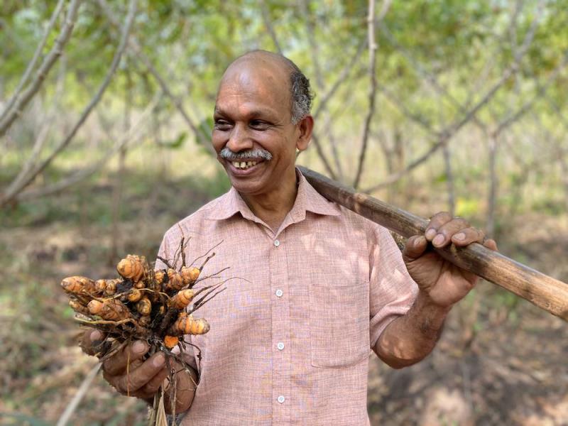Unser Kurkuma stammt aus dem Distrikt Wayanad in Indien. Dort wird die Gelbwurzel von verschiedenen lokalen Kleinbauern angebaut. Die Erzeuger gehören zur Kooperative Organic Wayanad, die die Gewürze zu fairen Preisen aufkauft, verarbeitet und vermarktet. Die Bauern erhalten einen rund höheren Preis pro Kilogramm als marktüblich. Außerdem organisiert die Organisation regelmäßig Schulungen und Weiterbildungen zur Verbesserung der Anbautechnik oder finanziert Projekte zur Verbesserung der Situation der Bauern.