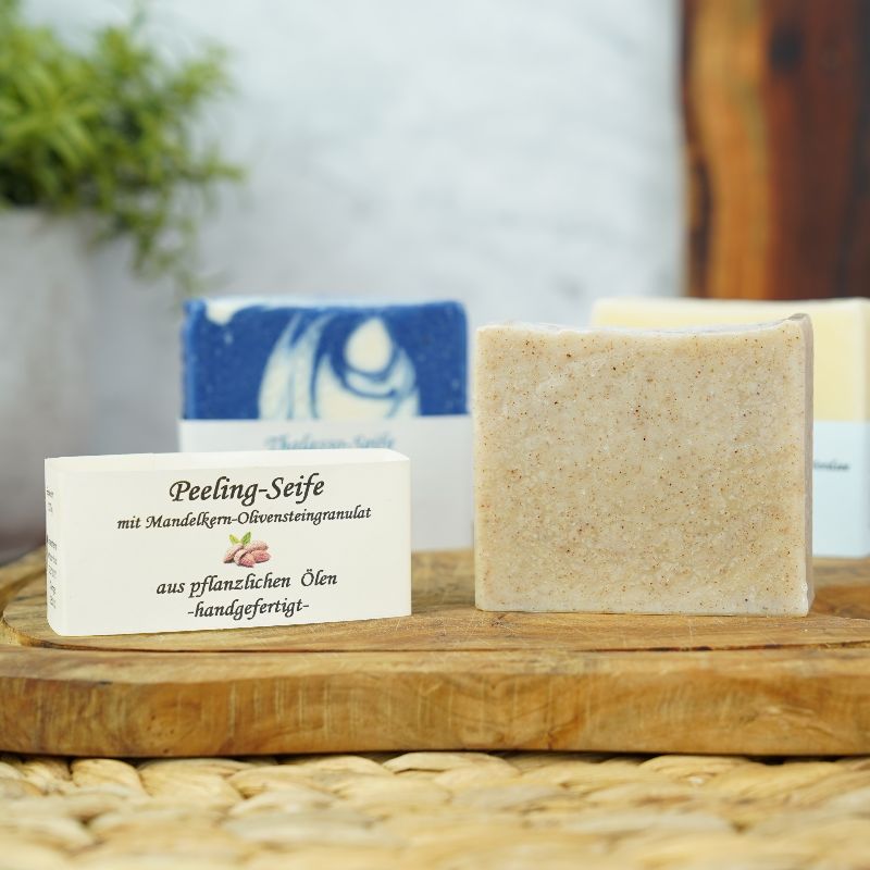 Peeling-Seife mit feinem Mandelkern- und Olivenstein-Granulat. Sie reinigt gründlich, entfernt abgestorbene Hautschüppchen und hinterlässt ein glattes Hautgefühl. Der Duft erinnert an Milch und Honig mit einer feinen Note von Vanille und Orange.