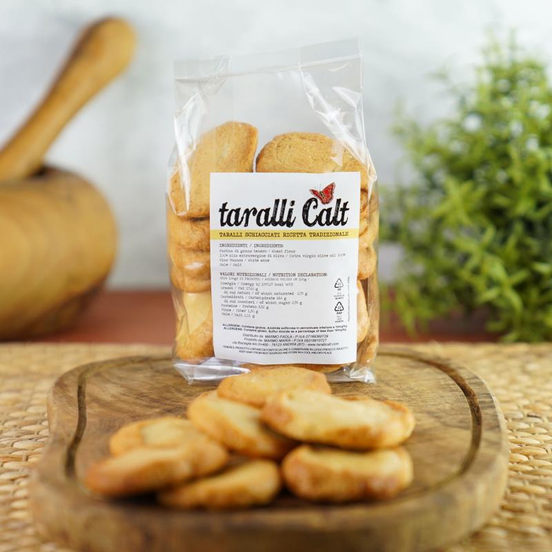 Tarallo ist der beliebte apulische Brot-Keks, dessen Teig nur aus Hartweizen, Olivenöl, Wein und Wasser geknetet und zum Kringel geformt wird.