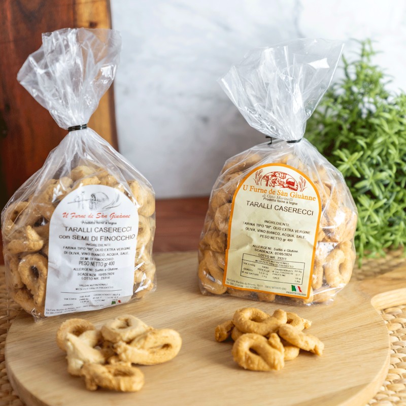 Frisch aus dem Ofen der historischen Kellerbäckerei der Familie Marinelli in der Altstadt von Bitonto stammen diese beliebten Kringel-Taralli – wahlweise einfach oder mit Fenchelsamen.