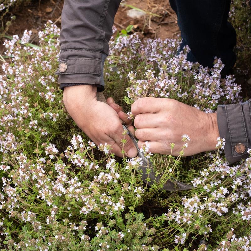 Dieser Thymian wird von Ioannis Adamos in der Nähe von Kozani in Griechenland ohne Verwendung künstlicher Dünger oder Pestizide angebaut. Der karge Boden in der Bergregion und die intensive Sonne unterstützen die Ausbildung vieler ätherischer Öle, die den Kräutern ihren intensiven Geschmack verleihen. Der Thymian wird mit Hand geerntet und anschließend luftgetrocknet. Der geringe Stielanteil, die leuchtende Farbe und das außergewöhnlich intensive Aroma machen unseren Thymian zu einem Produkt der Extraklasse.