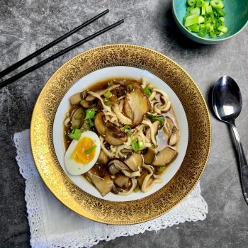 Das Ei ist kein Muss, schmeckt aber herrlich zu der intensiven Pilzsuppe und ist ein typisches Topping für asiatische Suppen. Ohne Ei ist das Gericht vegan. Eine alternative Einlage könnten gedämpfte Edamame-Bohnen oder Tofu sein.