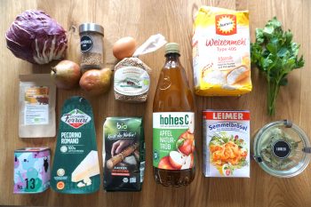 Gnocchi mit Lenticchie-Linsen mit Senfbirne, Pecorino, Radicchio & Blattsalat (1)