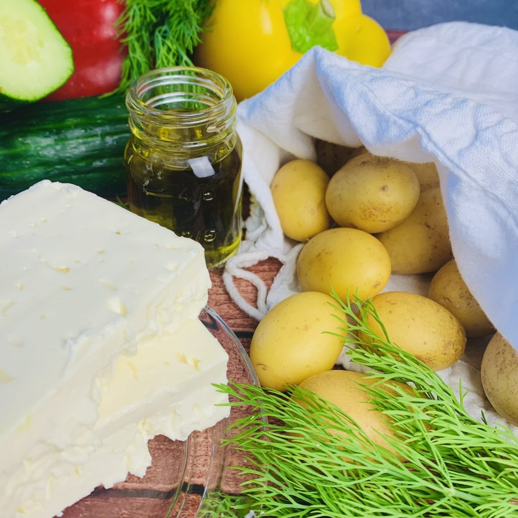 Kartoffelsalat mit Feta und Olivenöl No.11 grün