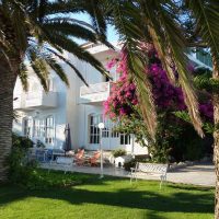 Am frühen Abend kommen wir in diesem charmanten kleinen Hotel an. Es ist wohltuend rundum in Deutsch angesprochen zu werden. Von der netten Meeresterrasse aus geht noch ein Sprung ins angenehm temperierte Mittelmeer und der Sonnenuntergang hilft zum Abspannen. Um 19:30 treffen wir uns zum gemeinsamen Abendessen, das die vitale achtzigjährige Köchin für uns zubereitet hat. Mit Raki, griechischem Wein und buntem Plaudern schließen wir den anstrengenden und anregenden Tag ab.