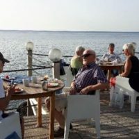 Auf blauen, wackeligen Stühlen, an Tischen, die nur mit Papiertischdecken gedeckt sind, zu sitzen. Standort, möglichst dicht am Meer.